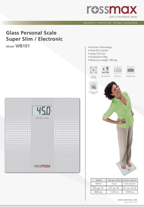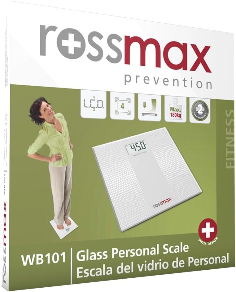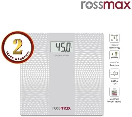 Rossmax Glass Personal Scale - Electronic Super Slim - ميزان شخصي رقمي لقياس وزن الجسم من الزجاج - روزماكس